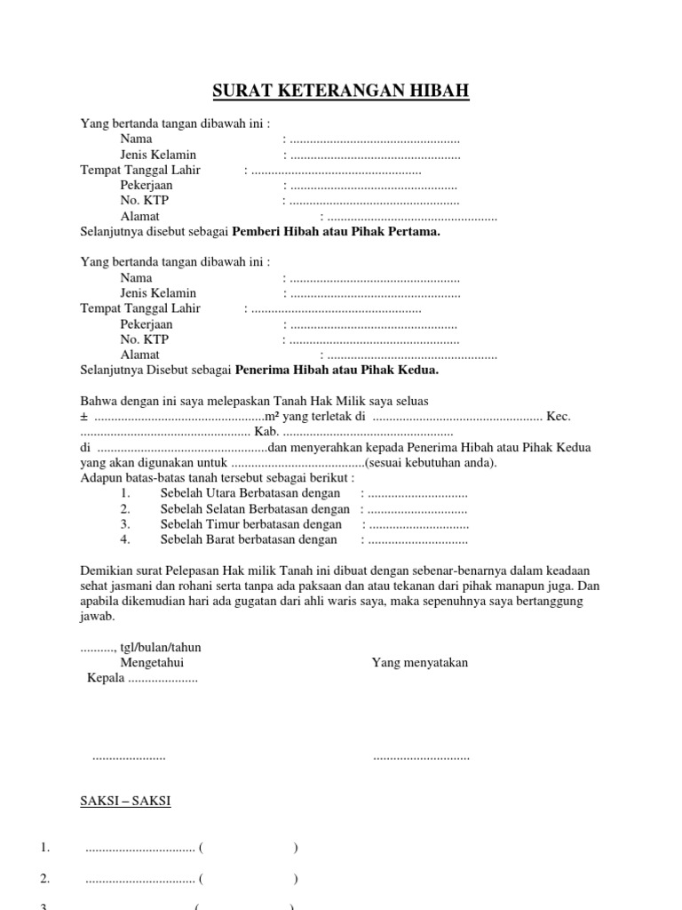Contoh Surat Warisan Tanah Dari Orang Tua Kepada Anak : Contoh Surat Hibah Tanah Dan Rumah Segala Kebutuhan - Suratku - 15 contoh surat permohonan kerjasama bantuan.